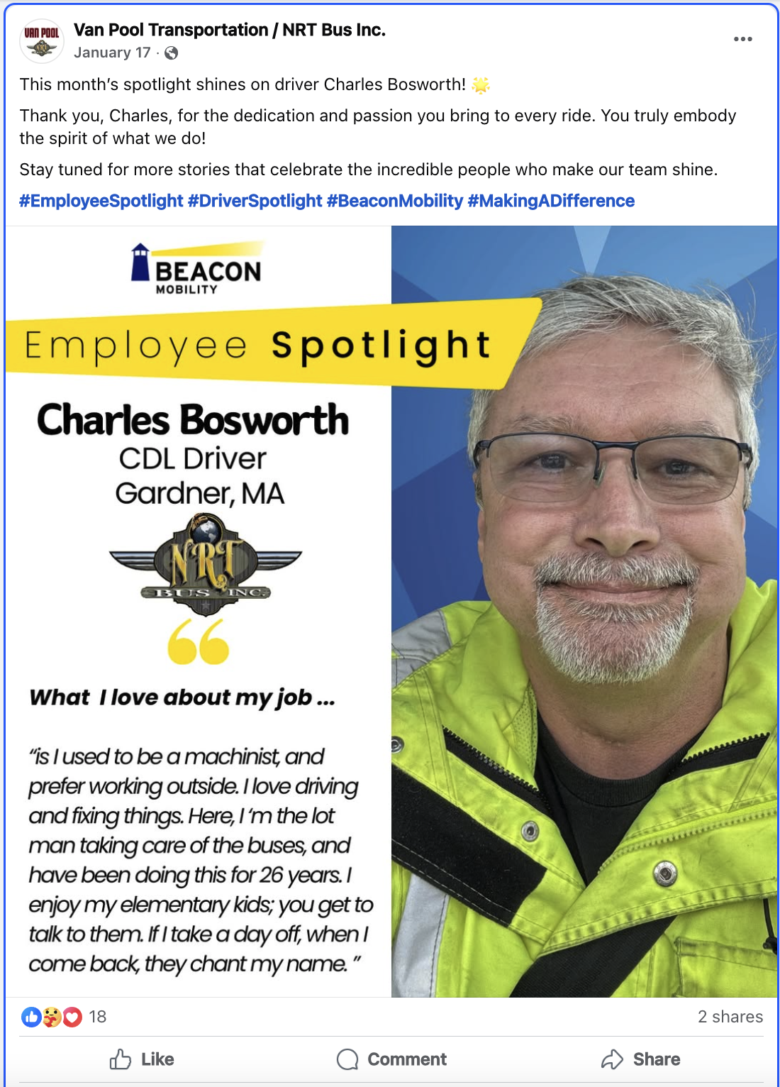 Employee Spotlight, Van Pool, Charles Bosworth, Jan. 17, 2025