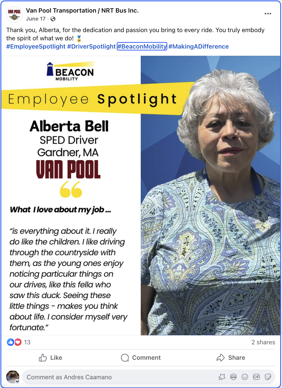 In this third of three sections, are nine samples of social media items edited and posted for Beacon Mobility from 2022 to 2025. Click on an image thumbnail to see the full-size version of each image.