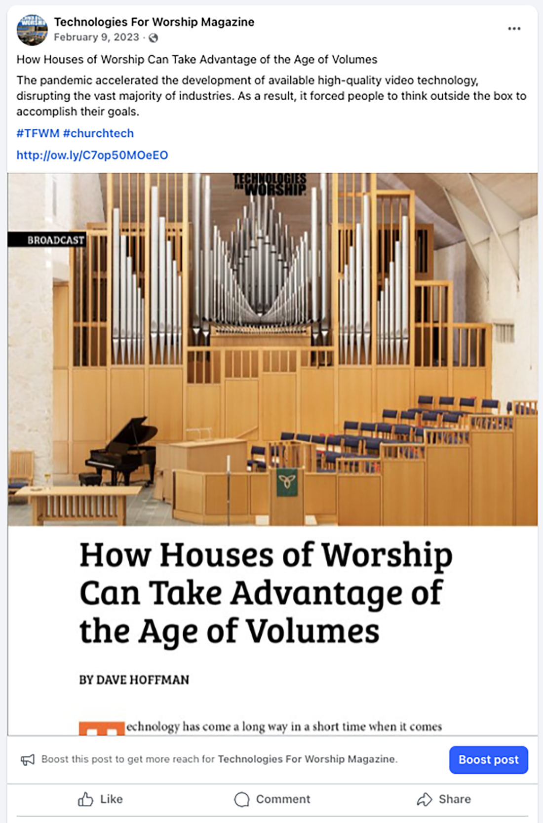 Technologies for Worship Magazine, Facebook, February 9, 2023