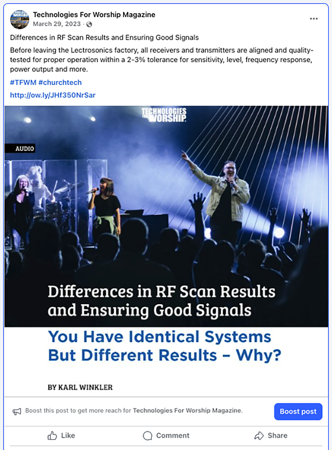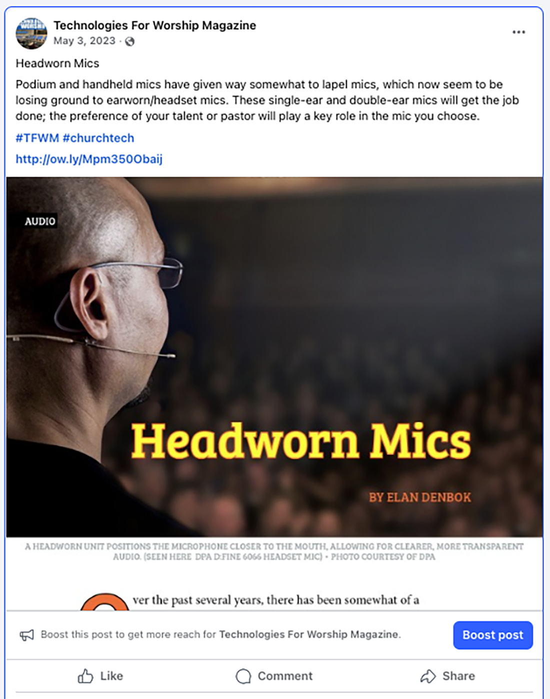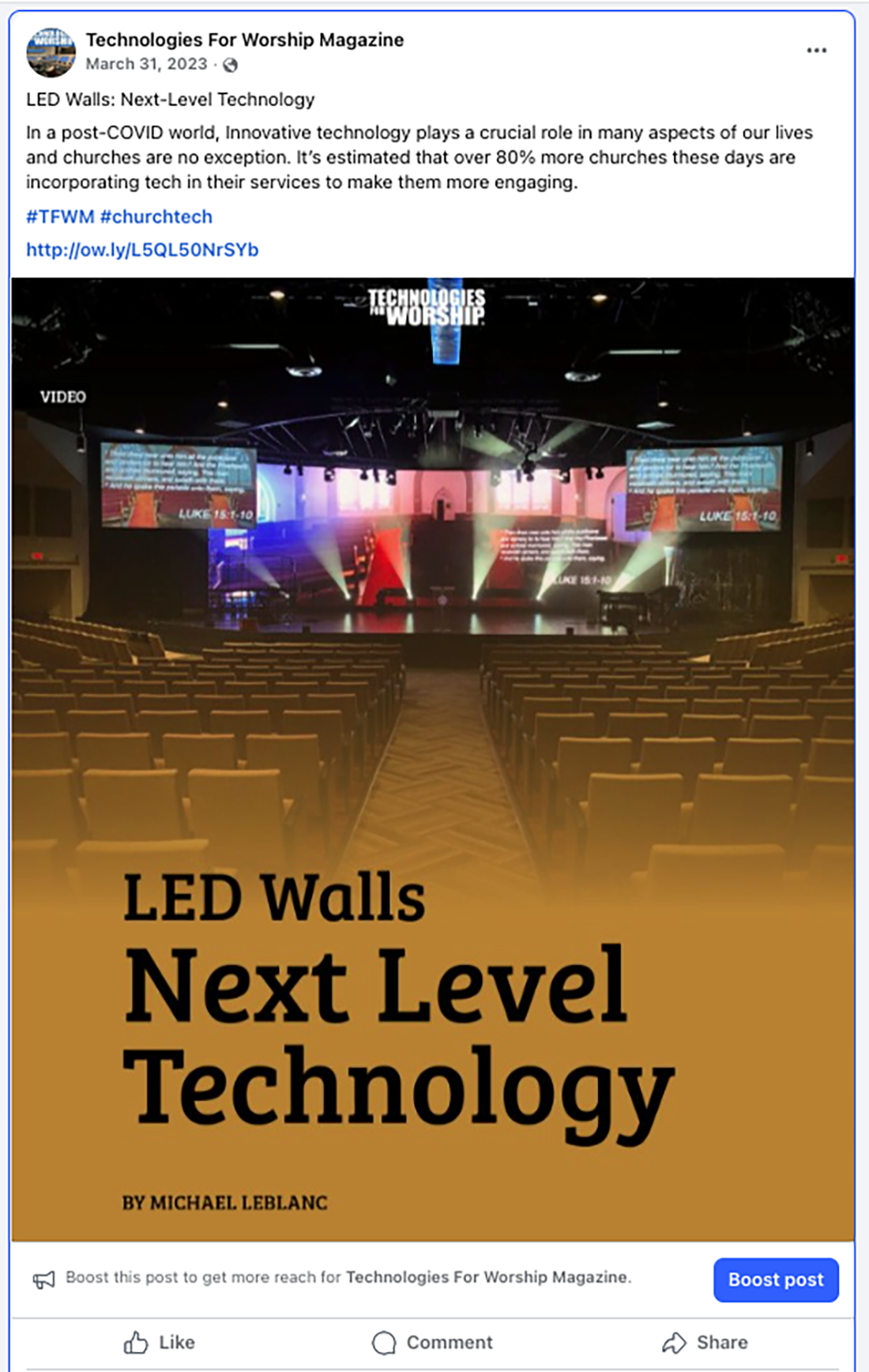 Technologies for Worship Magazine, Facebook, March 29, 2023
