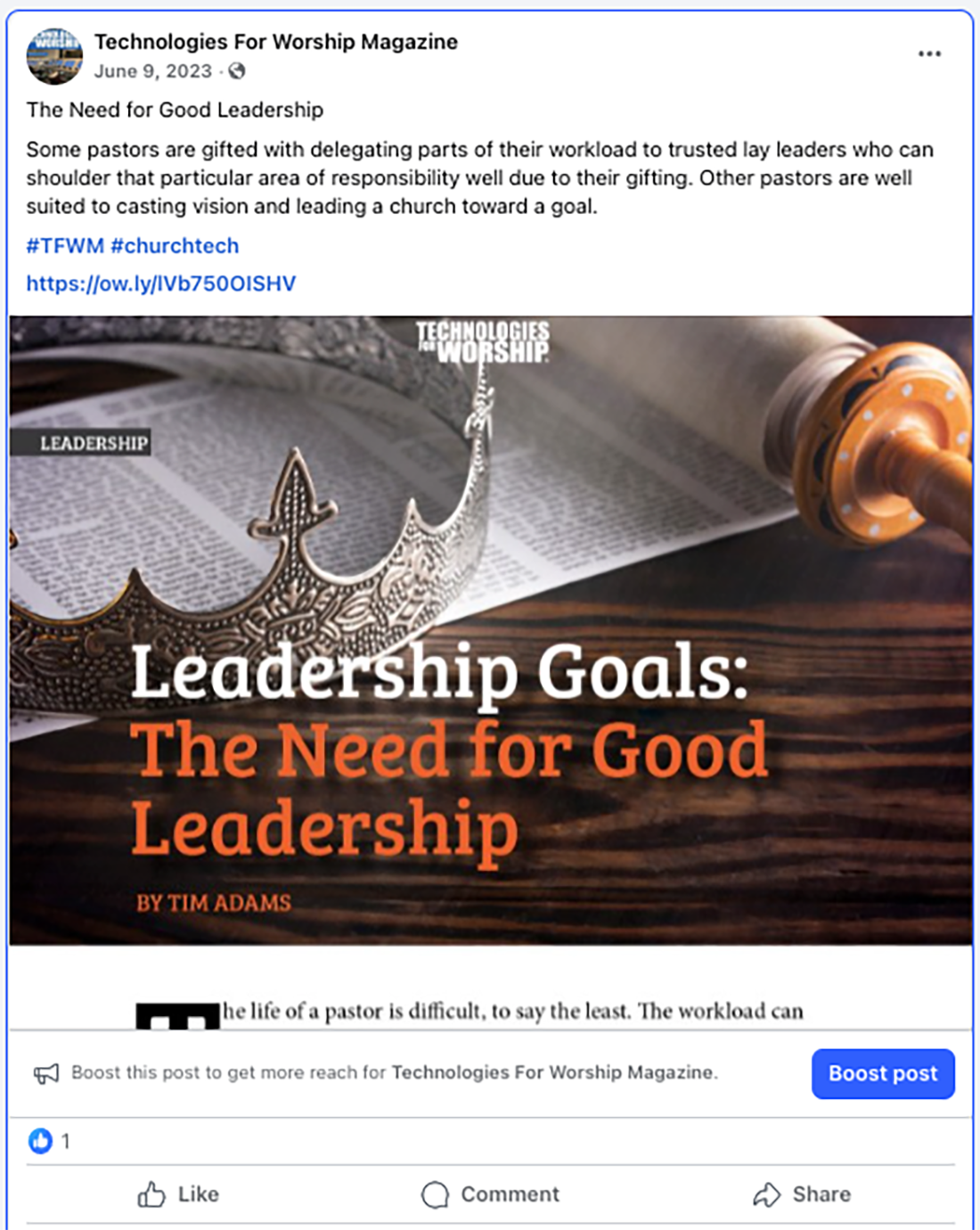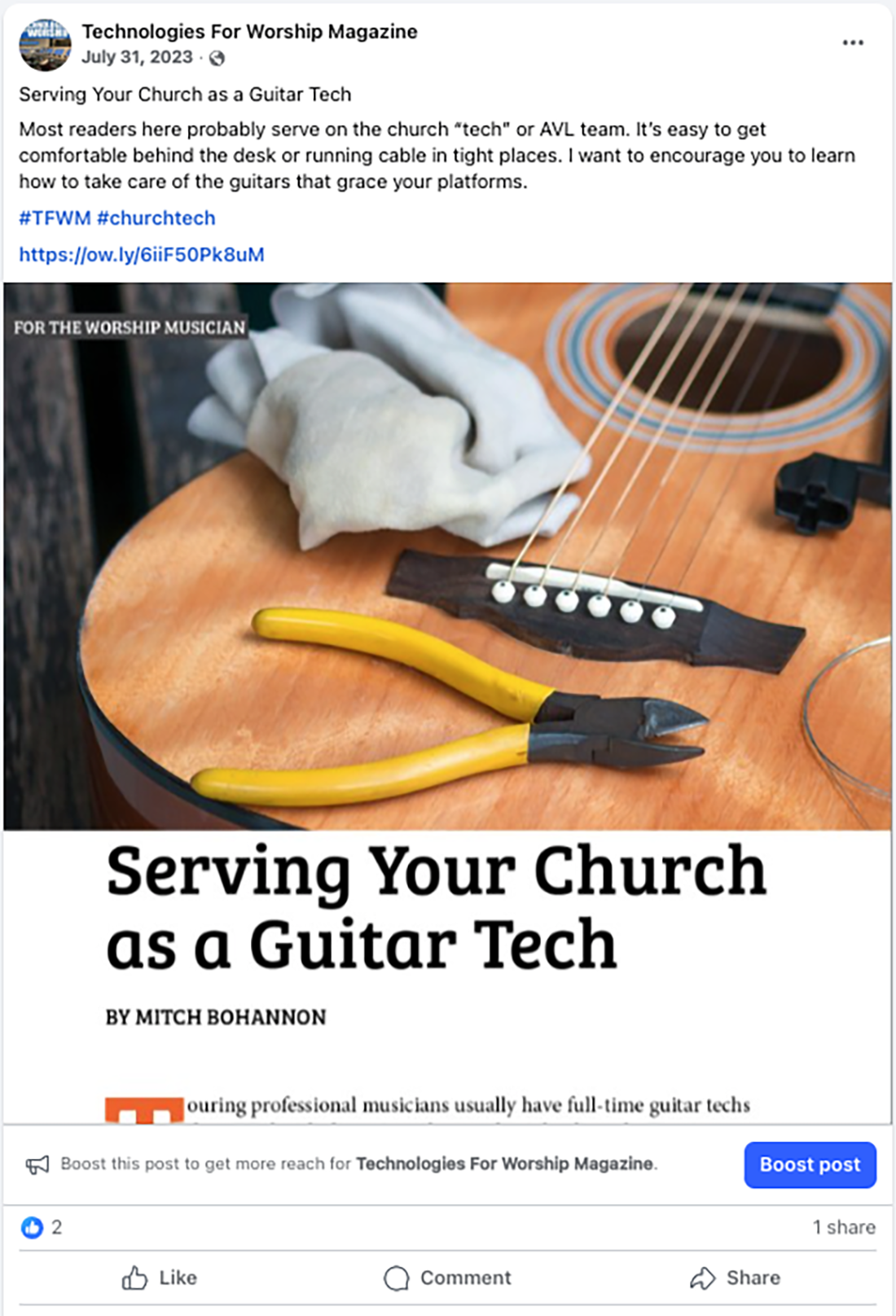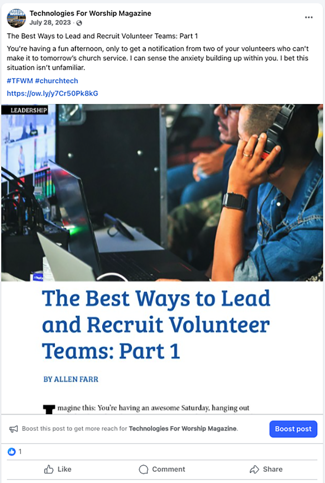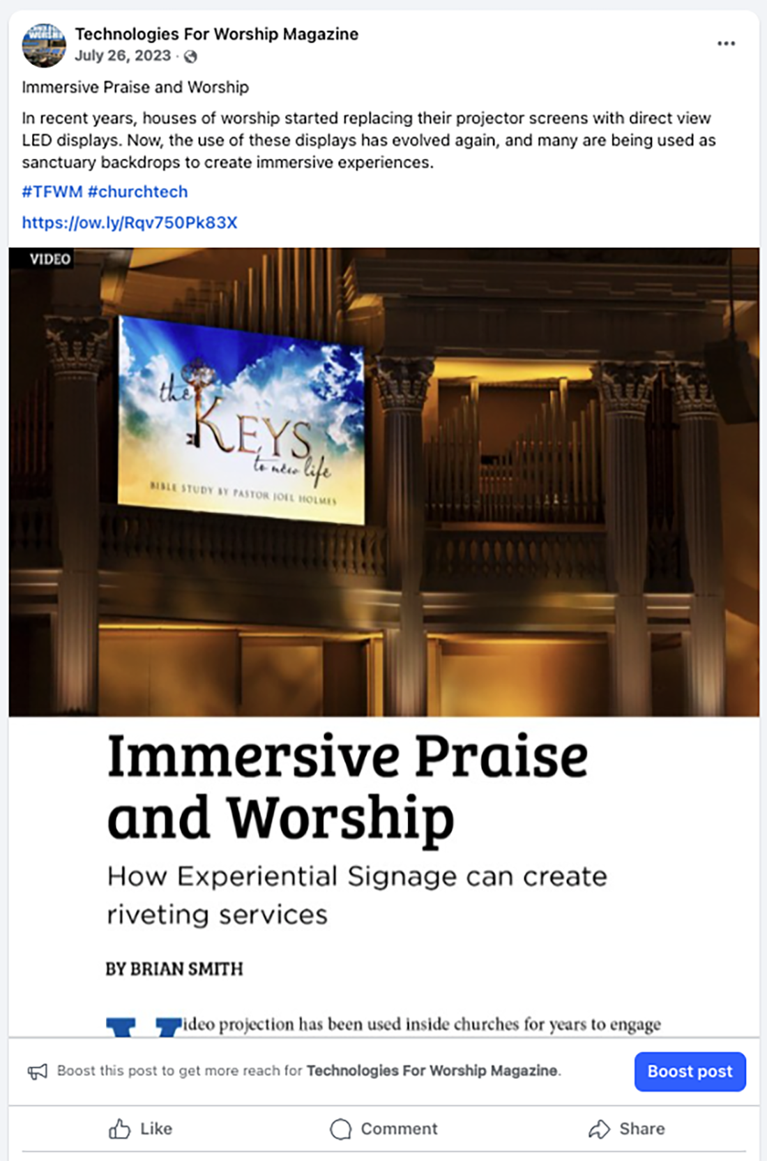 Technologies for Worship Magazine, Facebook, July 26, 2023